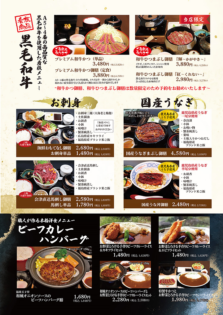 信夫山迎賓館 和食くろ沢 牛かつ牛若丸