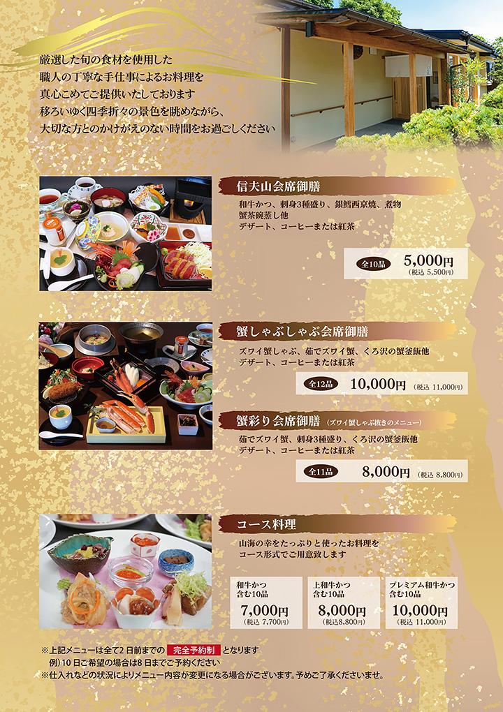 当館料理長 高嶋 尚 が心をこめて作る料理です。